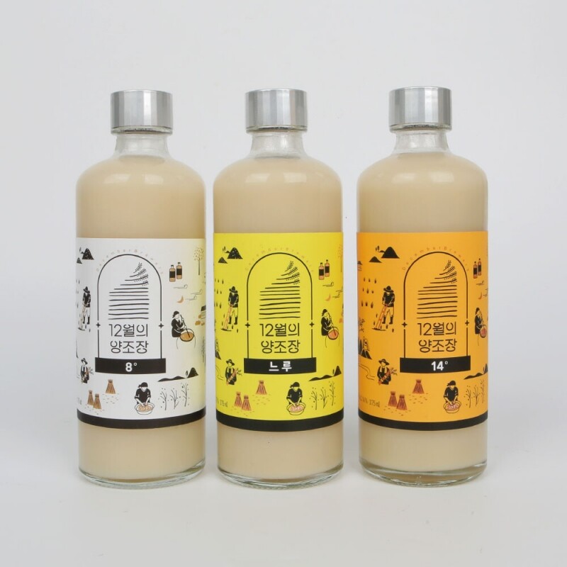 12월의양조장 탁주세트1호 8도X2병 12도X1병 14도X1병 (각375ml유리병)